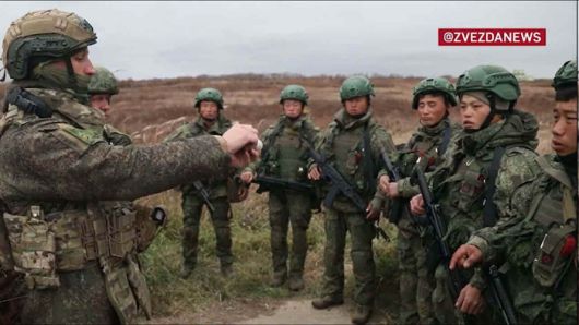 지난 4월 러시아 타스 통신이 공개한 접경지 쿠르스크 수잔스키 지구에 배치된 북한군 병력 모습. <타스 통신 X 계정> |
