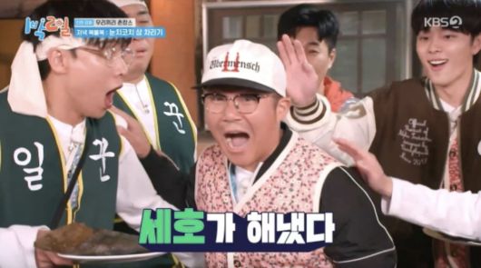 이준과 유선호가 같은 재료를 고르며 탈락했고, 문세윤과 딘딘도 같은 선택을 하며 식재료 확보에 실패했다. 마지막으로 입장한 조세호가 아무도 고르지 않은 삼겹살을 선택하면서 위기를 넘겼다. 멤버들은 조세호의 이름과 차은우를 합쳐 '조은우'를 외치며 환호했다. 조세호는 금니를 드러내며 기뻐했다.
