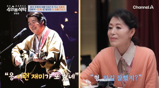 16일 방송된 채널A '4인용식탁'에는 가수 정훈희가 출연했다. 절친으로는 인순이, 박상민, 박구윤이 출연했다.