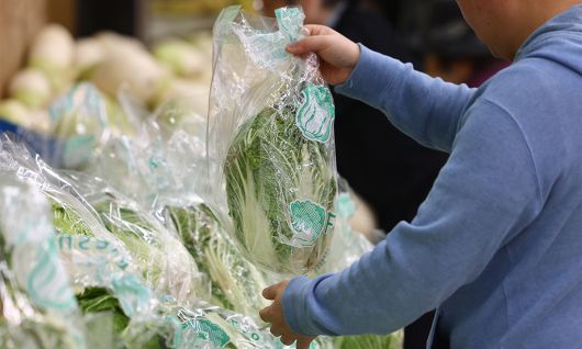 한 마트에서 한 시민이 배추를 고르고 있다. 연합뉴스 |