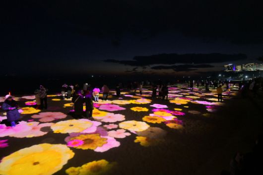 강원 속초시가 해수욕장에 조성한 야간경관 ‘빛의 바다, Sokcho’ 모습. [사진 속초시] |