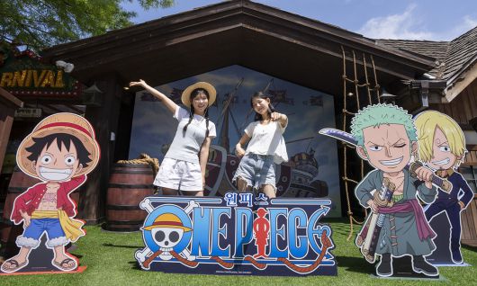 모델들이 경기도 용인 에버랜드에 마련된 ‘원피스’ 테마 포토존에서 포즈를 취하고 있다. 에버랜드는 글로벌 인기 지식재산권(IP) ‘원피스’와 함께 시원한 물을 테마로 한 여름축제 워터 페스티벌’을 오는 20일부터 두 달여 동안 개최한다고 16일 밝혔다. 삼성물산 제공 ⓒ 세상을 보는 눈, 세계일보