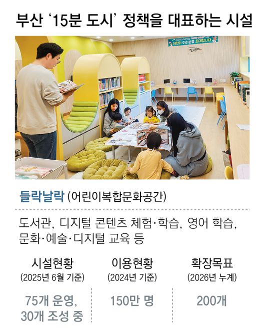 들락날락은 부산시가 추진하는 ‘15분 도시’ 정책의 대표 시설이다. 책을 읽는 공간은 물론이고 영어 교육, 증강현실(AR) 체험 등 다양한 콘텐츠를 제공하고 있다. 무엇보다 어린 자녀를 둔 부모들이 함께 모이고 교류할 수 있는 ‘지역 거점’ 역할을 한다. 이희정 시 창조교육과 어린이복합문화공간팀장은 “날씨와 관계없이 걸어서 쉽게 방문할 수 있어 지난해에만 약 150만 명의 시민이 이용했다”고 밝혔다.