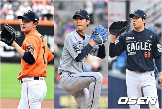 미래를 바라보면 더 웅장해진다. 2022년 1차지명 문동주(22), 2023년 전체 1순위 김서현(21), 2024년 전체 1순위 황준서(20), 2024년 2라운드 조동욱(21), 2025년 전체 2순위 정우주(19)까지 줄줄이 특급 유망주를 모았다.