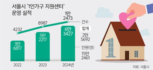 시에 따르면 2023년 기준 서울의 1인가구 비중은 전체(414만 가구)의 39.4%인 163만가구에 달한다. 시는 이처럼 늘어나는 1인가구를 보다 체계적으로 지원하기 위해 2021년부터 1인가구 지원사업을 본격화하고 24개 자치구(중구 새 단장 중)에 1인가구지원센터를 설치해 운영하고 있다.