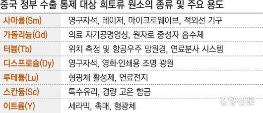 희토류는 이름과 달리 세계 곳곳에 분포돼 있다. 다만 채굴과 제련이 까다롭고 이 과정에서 막대한 환경피해를 유발하기 때문에 전 세계에서 생산하는 곳이 많지 않다. 원자량에 따라 경·중·중(經·中·重)희토류로 분류한다. 원자량이 많을수록, 즉 원자핵이 무거울수록 제련하기 까다롭고 생산 과정에서 환경 피해도 더 크다. 중국이 지난 4월 수출 통제 대상으로 지정한 희토류는 모두 중·중(中·重) 희토류다.