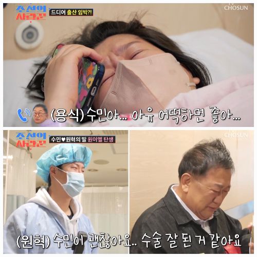 진통 중 눈물을 흘리던 이수민은 결국 아빠 이용식에게 전화를 걸어 “이제 진통 시작해… 너무 아파”라고 말했고, 전화를 받은 이용식은 “우리 딸 아파서 어떡하냐”며 말을 잇지 못했다. 결국 이용식과 아내는 곧장 병원으로 달려갔다.