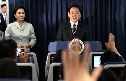 이재명 대통령, 기내 기자간담회. 연합뉴스 |