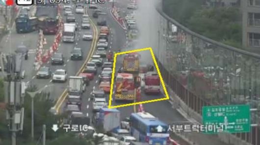 17일 오전 서울 구로구 개봉동 오류IC에서 개봉1동 사거리로 향하는 남부순환로에서 차량 화재가 발생했다. 현재 하위 2개차로가 차단되면서 정체가 이어지고 있다. [이투데이/기정아 기자 (kki@etoday.co.kr)] ▶프리미엄 경제신문 이투데이 ▶비즈엔터이투데이(www.etoday.co.kr), 무단전재 및 수집, 재배포금지