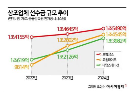 그런데 2위와 3위 두 회사가 보유한 선수금 격차가 빠르게 좁혀지고 있다. 공정위 발표 당시 격차는 약 1570억원이었지만, 올해 초 공개된 각 사의 '2024년 감사보고서' 기준으로는 약 950억원까지 줄었다. 9개월 만에 39% 감소한 수치다.