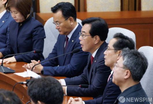 [서울=뉴스핌] 윤창빈 기자 = 송언석 국민의힘 원내대표가 17일 오전 서울 여의도 국회에서 열린 원내대책회의에서 모두발언을 하고 있다. 2025.06.17 pangbin@newspim.com |