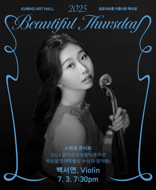 섬세한 감성과 반짝이는 음악성을 가진 차세대 바이올리니스트 백서연은 지난 2023년 금호영재콘서트 무대에 올랐다. 2024년 윤이상국제음악콩쿠르에서 자신감 있는 연주로 음악성을 인정받았고, 2차 본선 진출자에 이름을 올리며 박성용영재특별상의 주인공으로 선정됐다.