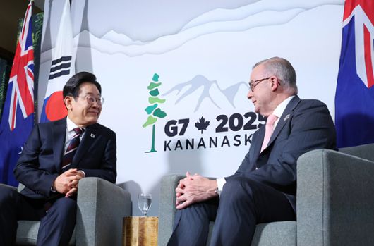 [아이뉴스24 김주훈 기자] 주요 7개국(G7) 정상회의 참석을 위해 캐나다를 방문 중인 이재명 대통령이 앤소니 알바니지 호주 총리와의 정상회담을 통해 북핵 문제 해결을 위한 소통·협력을 강화하기로 했다.