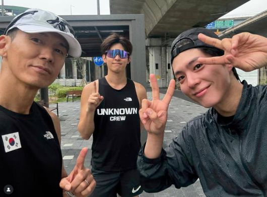 사진 속 세 사람은 흐린 날씨에도 러닝 후, 밝은 표정으로 카메라를 향해 포즈를 취하는 모습을 보였다.