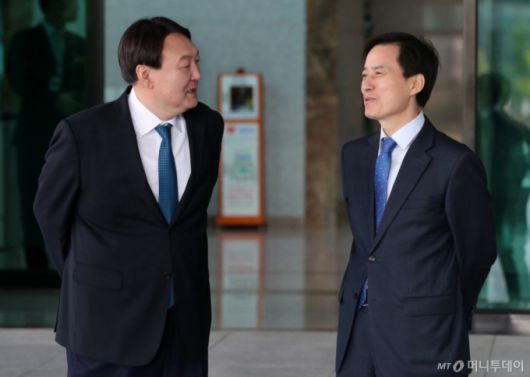 (서울=뉴스1) 오대일 기자 = 이재명 대통령이 12일 내란특검법에 따른 특별검사로 민주당이 추천한 조은석 전 감사원장 권한대행을 지명했다. '내란 종식'이라는 막중한 임무를 짊어진 조 전 대행은 감사원 감사위원 시절 전현희 권익위원장에 대한 감사 문제로 윤석열 정부 감사원 수뇌부와 정면 대립하며 각을 세운 바 있다. 조 특검은 13일 오전 기자들에게 보낸 입장문에서 "수사에 진력해온 국가수사본부·고위공직자범죄수사처·검찰의 노고가 헛되지 않도록 최선을 다하겠다"며 성실한 특검 수행을 약속했다. 사진은 지난 2017년 10월 23일 조은석 당시 서울고검장(오른쪽)과 윤석열 서울중앙지검장이 서울고검에서 열린 국회 법사위 국정감사에 앞서 국감장에 도착하는 의원들을 기다리며 대화를 나누는 모습. 2025.6.13/뉴스1 Copyright (C) 뉴스1. All rights reserved. 무단 전재 및 재배포, AI학습 이용 금지. /사진=(서울=뉴스1) 오대일 기자 |