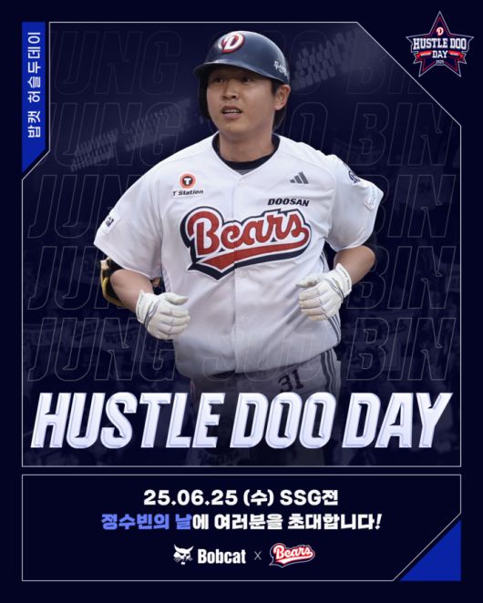 두산이 “25일 잠실구장에서 열리는 2025 KBO리그 정규시즌 SSG와 홈경기에서 ‘정수빈 밥캣허슬두데이’ 행사를 진행한다”고 밝혔다.