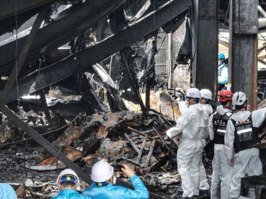 ▲2024년 6월 25일 경기도 화성시 서신면 리튬전지 공장 화재 현장에서 경찰과 소방, 국립과학수사연구원, 국토안전연구원, 고용노동부, 산업안전관리공단 등 관계자들이 화재 원인을 찾기 위한 합동 감식을 하고 있다. ⓒ연합뉴스 |