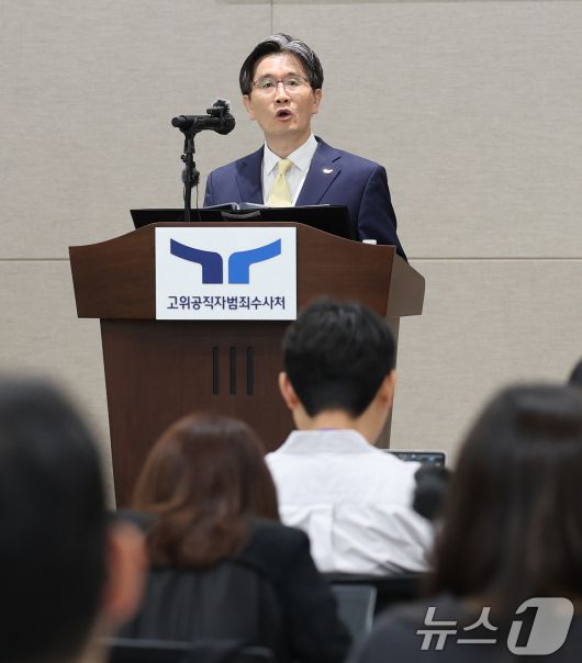 (과천=뉴스1) 오대일 기자 = 오동운 고위공직자범죄수사처장이 취임 1주년을 맞은 17일 오전 경기 과천 정부청사에서 열린 공수처 출입기자단 간담회에서 모두발언을 하고 있다. 오 처장은 이 자리에서 "12·3 비상계엄 수사에 미흡한 부분이 있었다"며 "국민 성원과 질책 모두 겸허히 받아들이고 반부패 수사기관으로서 더욱 정진할 것을 약속드린다"고 밝혔다. 2025.6.17/뉴스1