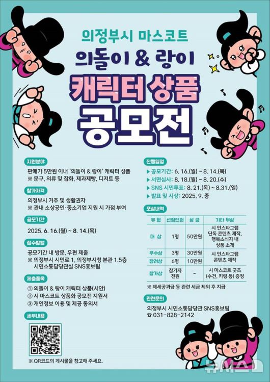 [의정부=뉴시스] 송주현 기자 = 경기 의정부시는 시 대표 마스코트 의돌이&랑이' 캐릭터 상품 공모전을 개최한다고 17일 밝혔다.
