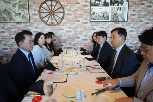 [스포츠서울ㅣ춘천=김기원기자]육동한 춘천시장이 16일(현지시간) 미국 보스턴에서 전윤종 한국산업기술기획평가원(KEIT) 원장과 오찬을 겸한 면담을 가졌다.