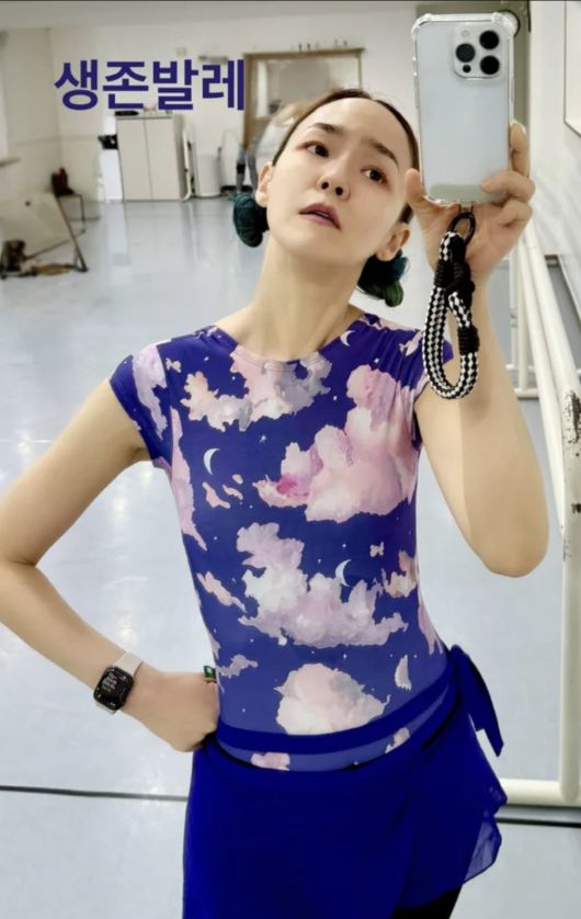 김윤아는 17일 자신의 소셜미디어에 "생존 발레"라는 글과 함께 사진을 올렸다. 사진 속 김윤아는 발레복을 입고 거울 앞에서 셀카를 남기고 있다. 정갈하게 땋은 머리와 타이트한 발레복 차림으로 군살 없는 몸매를 드러냈다.