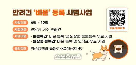 〔스포츠서울│안양=좌승훈기자〕경기 안양시는 반려동물의 유기 및 유실 방지를 위해 비문으로 반려견을 등록해 관리하는 ‘반려견 비문 등록’ 시범사업에 나섰다고 17일 밝혔다.