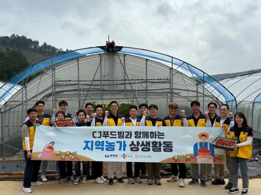 CJ푸드빌은 17일 전북특별자치도 무주군에서 임직원 20여명이 딸기 수확과 기부 물품 전달 등으로 지역 상생 활동을 진행했다고 밝혔다.