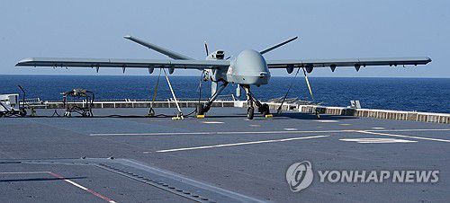 독도함에서 이륙 준비하는 무인기 '모하비' |