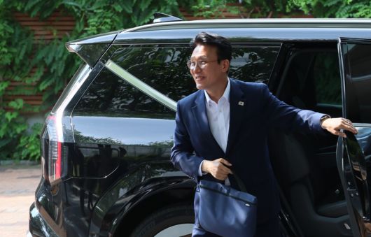 | 김민석 국무총리 후보자가 17일 서울 종로구 통의동 금융감독연수원에 마련된 청문회 준비단 사무실로 출근하기 위해 차에서 내리고 있다. / 사진 = 연합뉴스 |