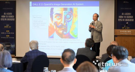 한국IT리더스포럼 6월 정기조찬회가 17일 서울 중구 한국프레스센터에서 열렸다. 김정호 카이스트 교수가 'AI 시대의 HBM의 미래와 반도체 패권경쟁'을 주제로 발표하고 있다. 김민수기자 mskim@etnews.com [Copyright © 전자신문. 무단전재-재배포금지]
