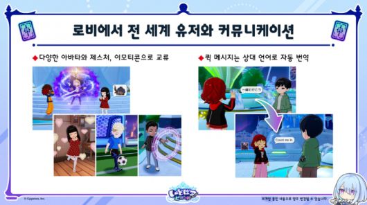 또한 ‘안녕하세요’ 등의 퀵 메시지는 상대방의 설정 언어로 번역되어 표시되기 때문에 전 세계 유저와 커뮤니케이션을 즐길 수 있다.