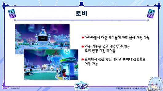 로비에서는 전 세계 유저와 대전을 즐길 수 있으며, 채팅과 제스처, 이모티콘 등으로 커뮤니케이션을 즐길 수 있다.