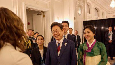 이재명 대통령과 김혜경 여사가 16일(현지시간) 캐나다 캘커리 한 호텔에서 열린 캐나다 총독 내외 주최 주요 7개국(G7) 정상회의 초청국 리셉션에 참석하고 있다.<사진=연합뉴스> |