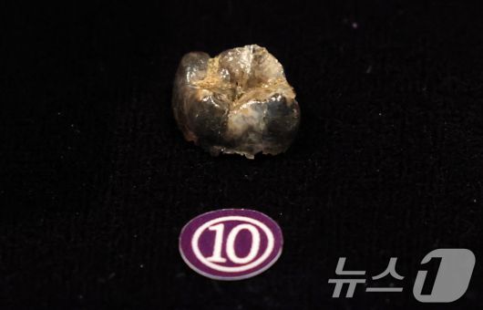 17일 서울 중구 한국의집에서 열린 ‘공주 무령왕릉과 왕릉원 조사성과’ 언론공개회에서 출토된 유물인 백제 23대왕 삼근왕의 어금니로 추정되는 치아를 공개하고 있다. 국가유산청 국립부여문화유산연구소는 23년 9월부터 1-4호분에 대한 발굴조사를 진행해 왕족의 장신구와 삼근왕의 어금니로 추정되는 치아 등을 발굴 했다고 밝혔다. 2025.6.17/뉴스1 ⓒ News1 박세연 기자 |
