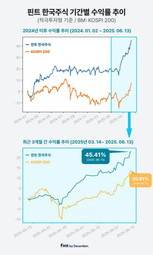 디셈버앤컴퍼니 송인성 대표는 "최근 국내 시장 변화와 기대감 속에서 핀트의 전략이 유효성을 입증했다"며 "장기투자에 특화된 알고리즘 역량을 바탕으로 시장의 상승장뿐 아니라 하락 국면에서도 안정성과 수익률을 동시에 추구할 수 있는 전략을 강화해 나갈 것"이라고 말했다.