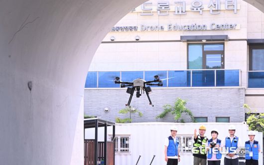 드론이 도로 순찰, 재해 방재, 콘텐츠 촬영, 건설과 산업 분야 등 다양한 활용도를 보이며 이를 운용하는 실무진의 드론실습 교육도 많은 관심을 받고 있다. 17일 경기도 시흥 국토교통부 한국교통안전공단 드론교육센터에서 교육 참가자들이 드론을 이용해 건설 현장 크랙, 누수 등을 살펴보는 실습을 하고 있다.