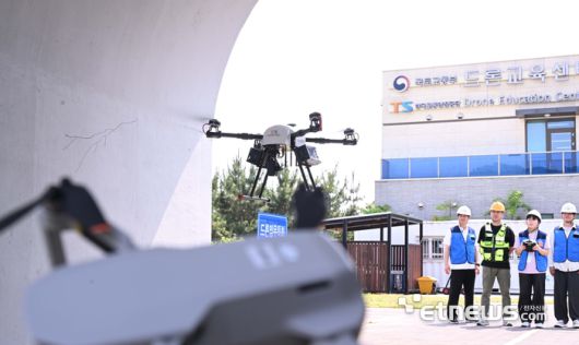 드론이 도로 순찰, 재해 방재, 콘텐츠 촬영, 건설과 산업 분야 등 다양한 활용도를 보이며 이를 운용하는 실무진의 드론실습 교육도 많은 관심을 받고 있다. 17일 경기도 시흥 국토교통부 한국교통안전공단 드론교육센터에서 교육 참가자들이 드론을 이용해 건설 현장 크랙, 누수 등을 살펴보는 실습을 하고 있다.