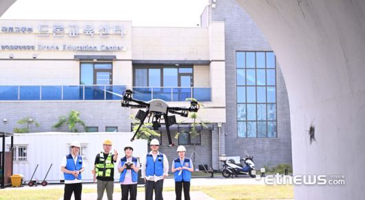 드론이 도로 순찰, 재해 방재, 콘텐츠 촬영, 건설과 산업 분야 등 다양한 활용도를 보이며 이를 운용하는 실무진의 드론실습 교육도 많은 관심을 받고 있다. 17일 경기도 시흥 국토교통부 한국교통안전공단 드론교육센터에서 교육 참가자들이 드론을 이용해 건설 현장 크랙, 누수 등을 살펴보는 실습을 하고 있다.
