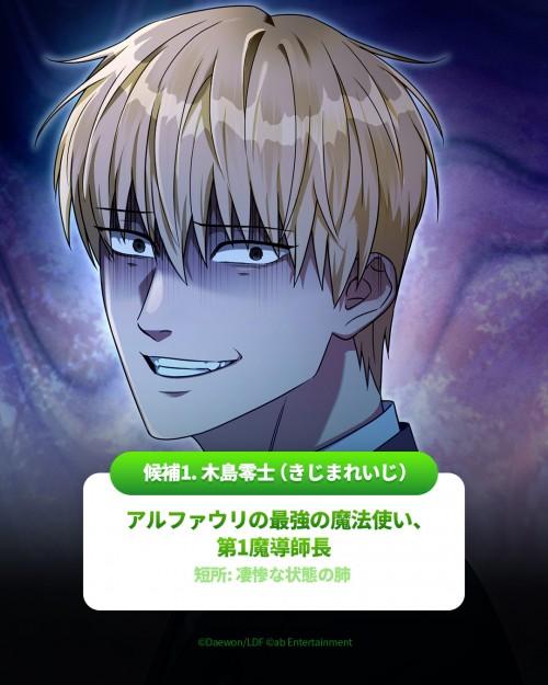 웹툰 '이세계 착각 헌터' 일본판 등장인물 소개. 원작 주인공 '김기려'의 이름이 '키지마 레이시'로 나와 있다./일본 라인망가 캡처 |