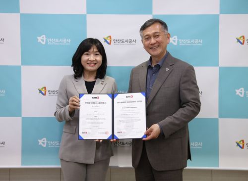 (안산=연합뉴스) 김인유 기자 = 안산도시공사는 안산지역 공공기관 최초로 한국경영인증원으로부터 국제표준 부패방지경영시스템 'ISO 37001' 인증을 획득했다고 17일 밝혔다.