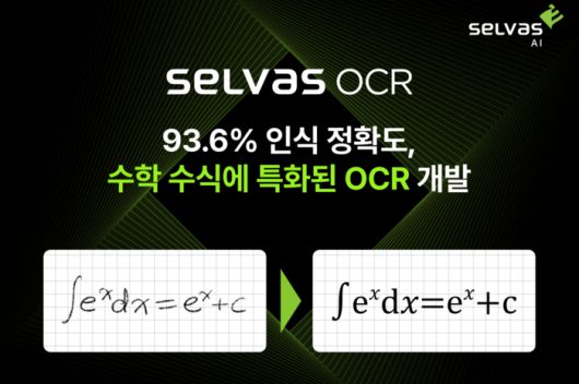 인공지능(AI) 전문기업 셀바스AI가 수학 수식 인식에 특화된 광학문자인식(OCR) 기술을 자체 개발했다. 상용 환경에서 최대 93.6%의 인식 정확도를 기록했다.