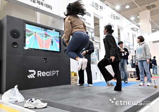 지난 3월 2025 서울국제스포츠레저산업전(SPOEX)에서 참관객이 AI 건강관리 서비스를 이용하고 있다. 이동근기자 foto@etnews.com |