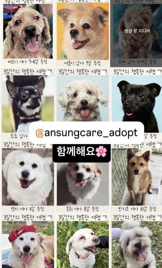 공사로 인해 보호소 아이들은 잠시나마 가족의 품이 필요했다. 함께 공개된 사진에는 다양한 견종, 다양한 나이의 반려견들이 카메라를 향해 웃고 있었다. “3일간의 행복한 여행”이라는 손글씨는 짧지만 깊은 메시지를 전했다.