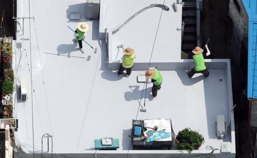 부산시자원봉사센터와 7개 기업·기관, 대학생 자원봉사자 등 130여 명이 17일 부산 남구 문현2동 일대 주택 20여 곳의 옥상에서 쿨루프(Cool Roof) 열차단 페인트를 도포하는 봉사활동을 하고 있다. 쿨루프는 태양열 반사 및 열 차단 효과가 있는 친환경 도료를 주택 지붕 및 옥상에 도포해 실내온도를 효과적으로 낮추는 기술이다. 2025.06.17. [부산=뉴시스] |