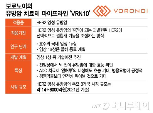 보로노이의 유방암 치료제 파이프라인 'VRN10'/그래픽=이지혜 |