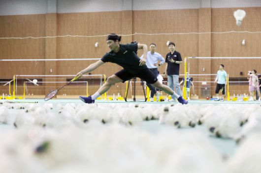 배드민턴 국가대표팀 합숙 훈련 2일 차를 맞은 17일 오전 9시 충북 진천국가대표선수촌. 20개의 배드민턴 코트가 완비된 오륜관에서는 박주봉(61) 감독의 호령과 선수들의 가쁜 숨소리만 울려 퍼졌다. 직접 셔틀콕을 주고받으며 선수들을 개별 지도한 박 감독은 선수들의 몸놀림이 성에 차지 않은 눈치였다.