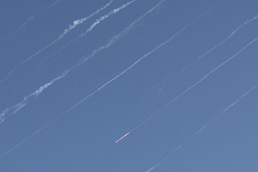 예루살렘 상공을 가로지르는 발사체. /EPA=연합뉴스 |