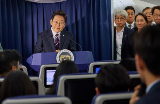 이 대통령은 기자들의 질문이 이어지자 “저희는 언론인에게 최대한 기회를 많이 드리자는 입장”이라며 “악수 안 해도 된다. 질문을 더 하시죠”라고 말하기도 했다. 이날 기내간담회는 이륙 약 2시간 뒤 예정에 없이 20분간 이뤄졌고 김혜경 여사가 이 대통령 옆자리를 지켰다.