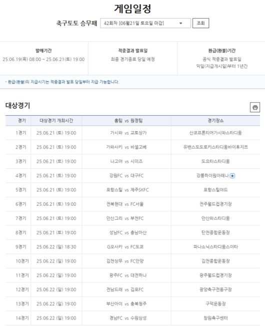다음 회차인 축구토토 승무패 42회차는 오는 19일 오전 8시에 발매를 개시해 오는 21일 오후 7시까지 전국 스포츠토토 판매점 및 인터넷 발매사이트 베트맨을 통해 발매된다.