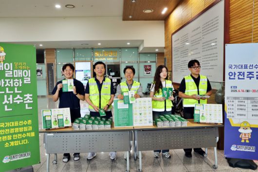 한편, 17일에는 김택수 선수촌장을 비롯한 임직원들이 선수식당 앞에서 '국가대표선수촌 안전보건경영방침'과 '훈련장 안전수칙'이 담긴 책자 및 열쇠고리 등을 배포해 구성원들의 안전의식 제고와 자발적인 참여를 독려했다.